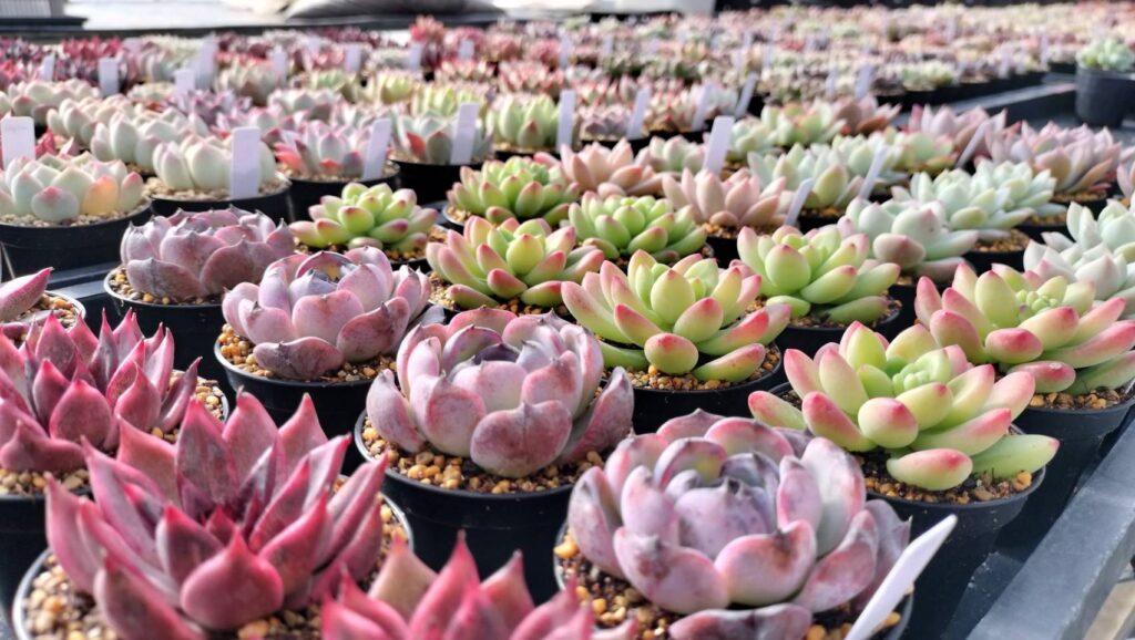 ぷりぷりのエケベリア・華麗なアエオニウム、可愛いセダム、育てやすい苗をたくさんご用意してお待ちしております。